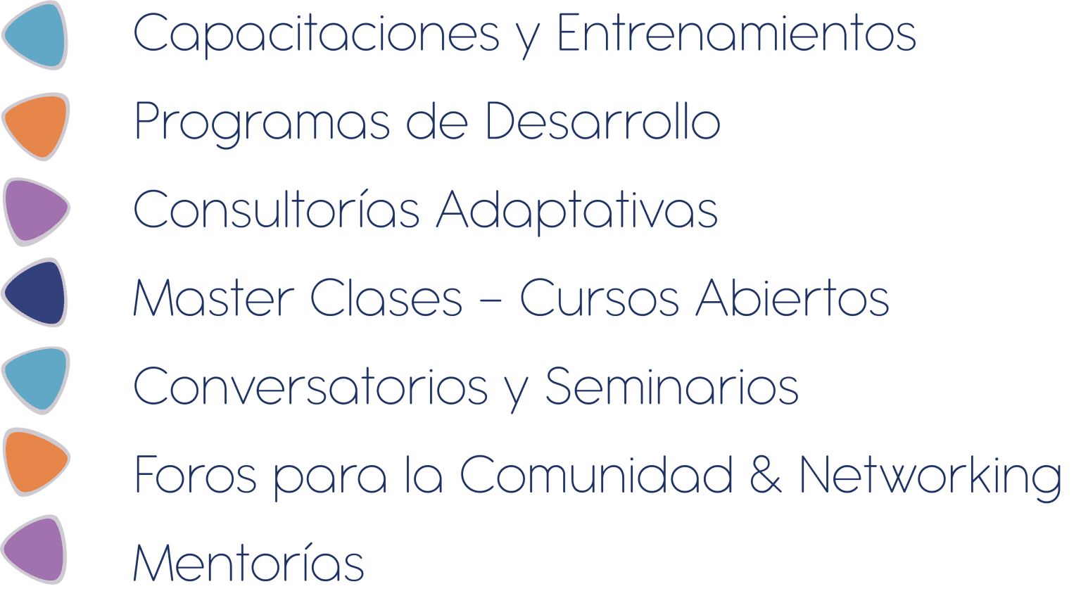 Intrapersonal – Interpersonal – Organizacional – facilitando herramientas y estrategias que permiten desarrollar una mayor autoconciencia, mejorar las relaciones con los demás y optimizar la dinámica en los equipos de trabajo